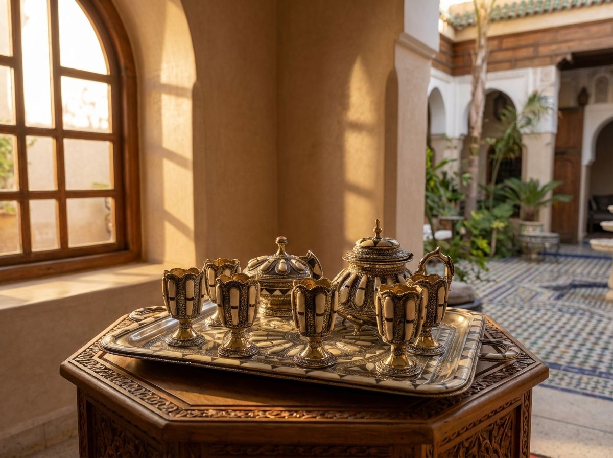 The Marrakech Royal Silver & Camel Bone Inlay Tea Service